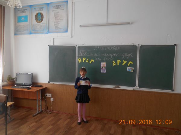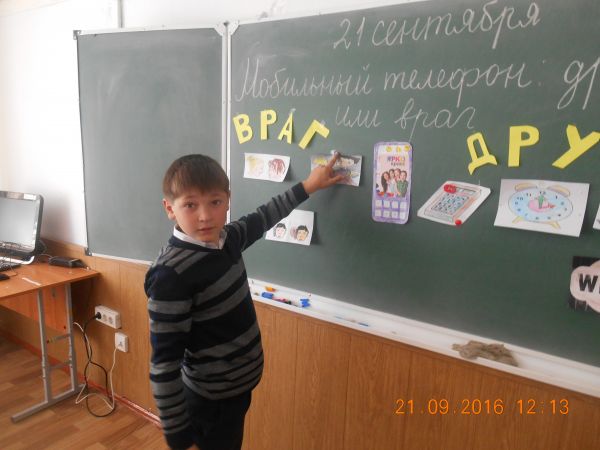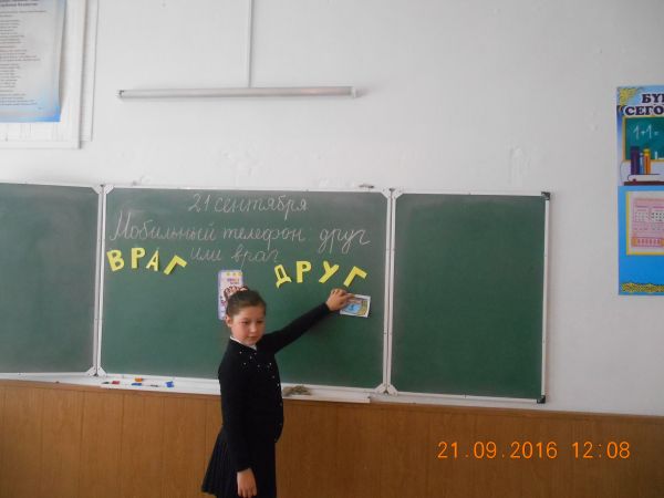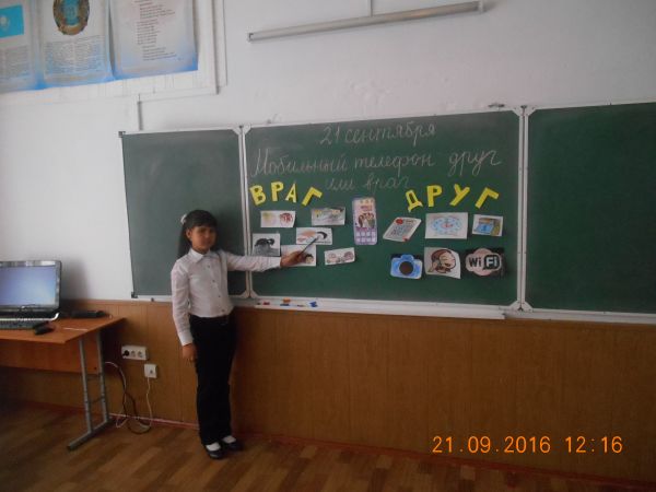 21.09.2016 учебного года Тургамбаева Г.К. провела классный час в 3«В» классе на тему « Мобильный телефон: друг или враг» .