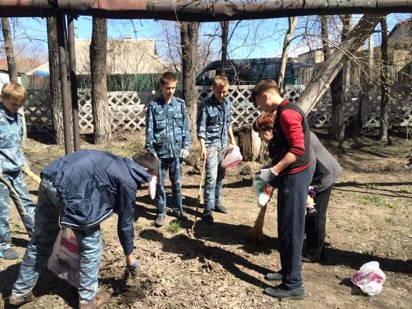 16.04.2016 г. в нашей школе начались субботники. Учащиеся и учителя убирали территорию школы.