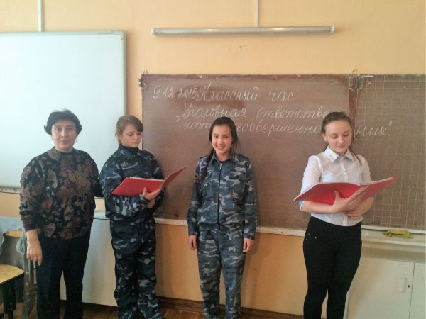 09.12.2015г. в 7 «Б» классе в ОСШ №91 был проведен классный час на тему: “Уголовная ответственность несовершеннолетних”.