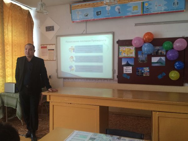 В связи с Посланием Главы государства страны народу Казахстана от 30.11.2015 г., в школе 09.12.2015 года состоялось обсуждение основных положений Послания Президента Республики Казахстан Н. А. Назарбаева народу Казахстана с участием педагогов.