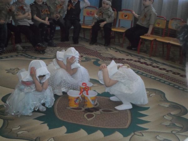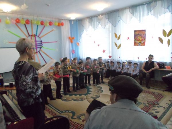 На праздниках дети пели песни военных лет, были одеты в солдатские формы, танцевали «Катюшу», инсценировали сценки . Возложили цветы к сделанному памятнику своими руками. Родители были н…