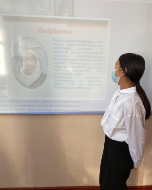 Қазақтың өнер шебері, атақты дәулескер күйші, композитор Дина Нүрпейісованың туғанына 160 жыл толуына орай 7 “А” сыныбымен сынып сағаты өткізілді.