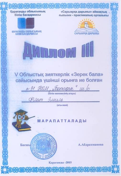 25 апреля 2015 года в КГУ ОСШ №91 прошла III школьная научно-практическая конференция «В науку первые шаги».