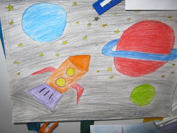 Вчесть праздника 12 апреля «Дня космонавтики» в мини-центре была организована выставка детских рисунков на тему: