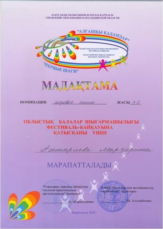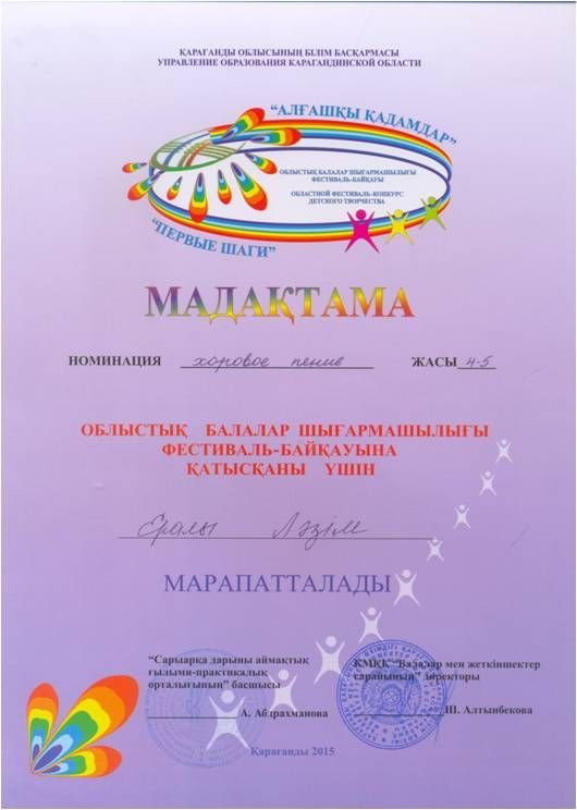 Дети мини центр «Ботақан» участвовали в областном фестивале-конкурсе детского творчество «Первые шаги». В номинации «Хоровое пение» дети получили грасоты за участ…