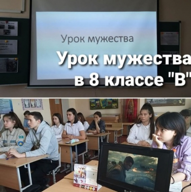 В 8 классе В проведен урок мужества, с целью сформировать представление о мужестве, долге, чести, патриотизме.
