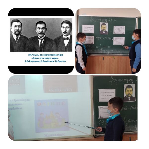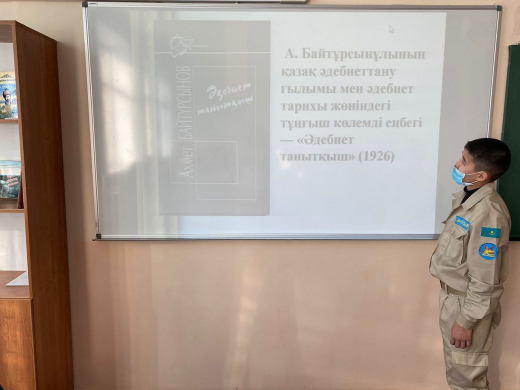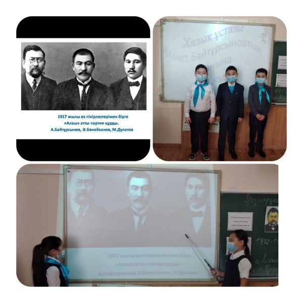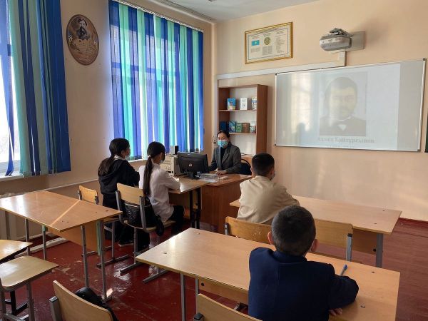 С целью ознакомить учащихся с жизнью и деятельностью основоположника казахского языкознания и литературоведения, тюрколога, публициста, педагога, поэта, первого реформатора казахского алфавита Ахмета Байтурсынова в 7 б классе проведен классный час «Ахмет