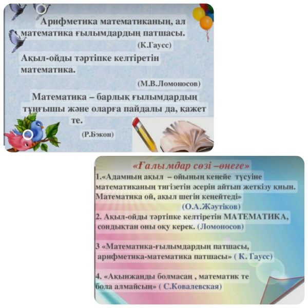 4 "А" сыныбы математика сауаттылық апталығында "Фигуралар әлемін" саяхаттады. Әртүрлі фигуралар жасады. Сынып жетекшісі: Асылханова Н.К.