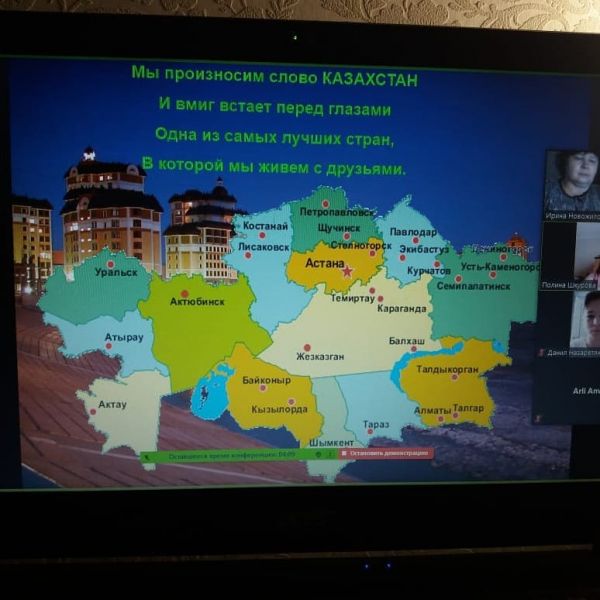 К Дню Независимости Республики Казахстан с целью воспитания казахстанского патриотизма в 6"Б" классе в онлайн режиме проведен классный час "Казахстан страна мира и согласия".