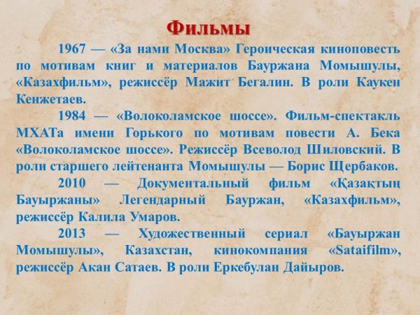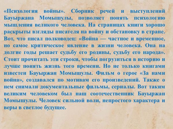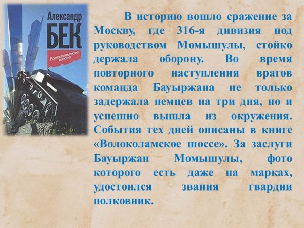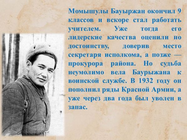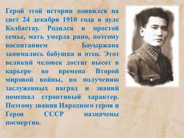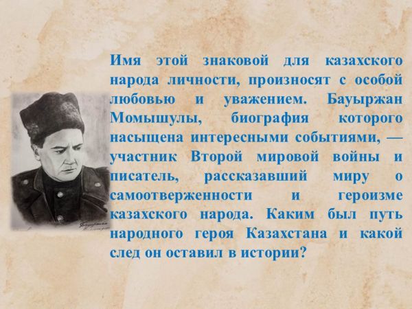 Бауыржан Момышулы - легендарный командир. Имя этой знаковой для казахского народа личности, произносят с особой любовью и уважением. БауыржанМомышулы, биография которого насыщена интересными событ…