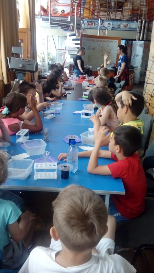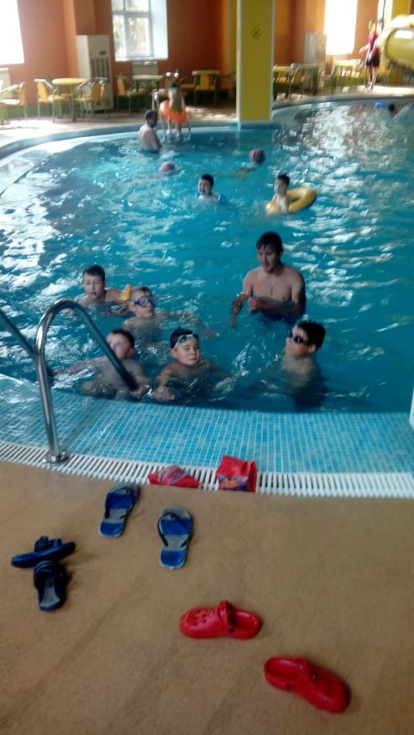 5 июля пришкольный лагерь "Робинзон" посетил аквапарк "Дельфин". После обеда дети пошли на кружок казахского языка.