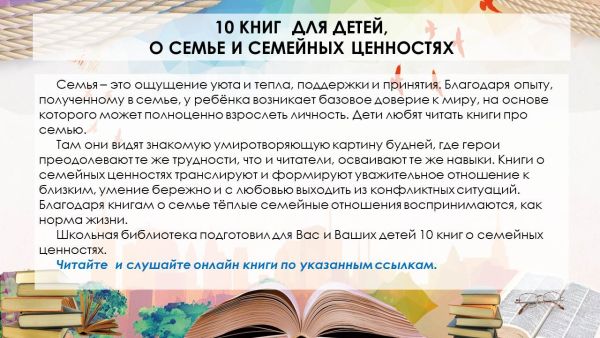 Уважаемые ученики и их родители! Вашему вниманию представлены 10 книг для детей о семье и семейных ценностях