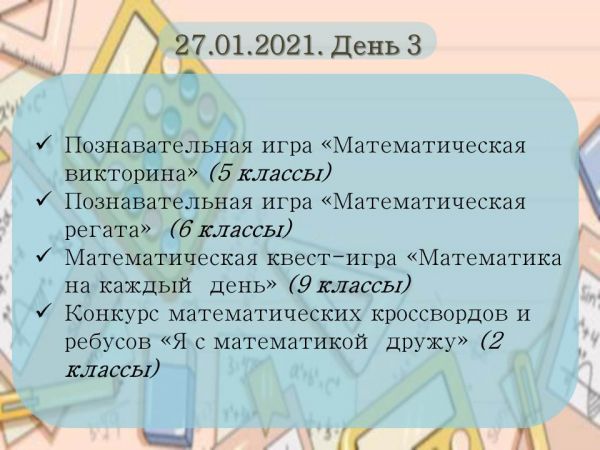 С 25 января 2021 года стартовала неделя функциональной грамотности по предмету "Математика" для учащихся нашей школы
