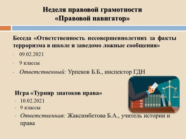 С 8 по 13 февраля 2021 года проходит неделя правовой грамотности "Правовой навигатор"