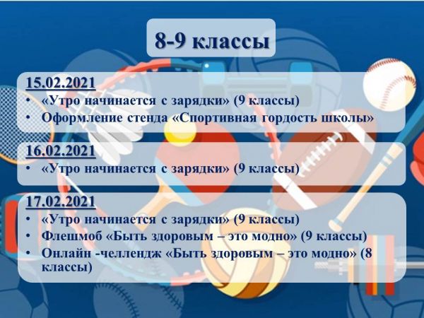 С 15 февраля по 20 февраля 2021 года проводится неделя физической культуры "Здоровым будешь, всё добудешь!"