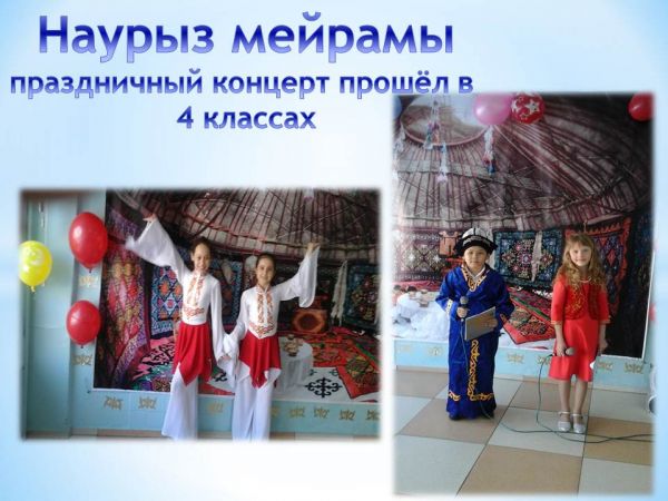 18 наурызда Наурыз мейрамы қарсаңында, 4-ші сыныптарда мерекелік бағдарлама өтті. Би билеп, көптеген тақпақтар айтылып, бауырсақтар әкелінді!