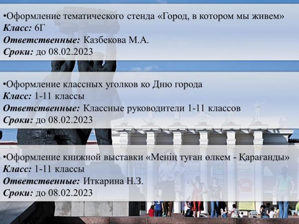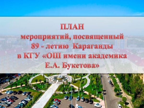 Представляем вашему вниманию план мероприятий к 89-летию города Караганды