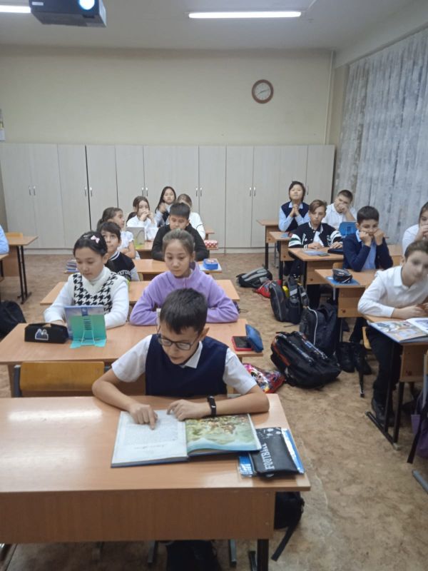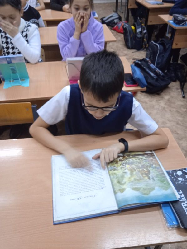 Бүгін "Оқуға құштар мектеп" жобасы аясында 4, 6 сыныптарда мектеп кітапханашысы 20 минуттық "Дауыстап оқу" іс-шараны өткізді. Балалар «Шығыстың ұлылары» топтамасының…