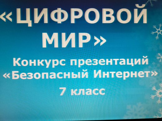 7 февраля среди учащихся 7 классов проведен конкурс презентаций "Безопасный интернет" в рамках недели цифровой грамотности "Цифровой мир"