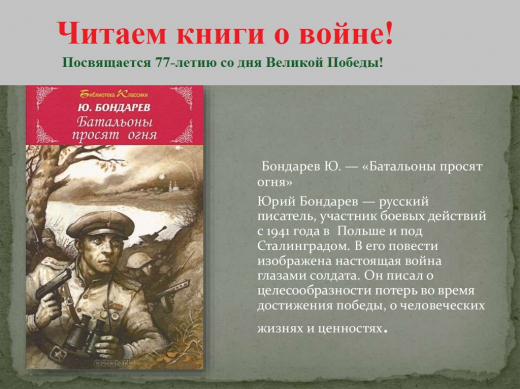 Школьная библиотека рекомендует своим читателям книги о Войне