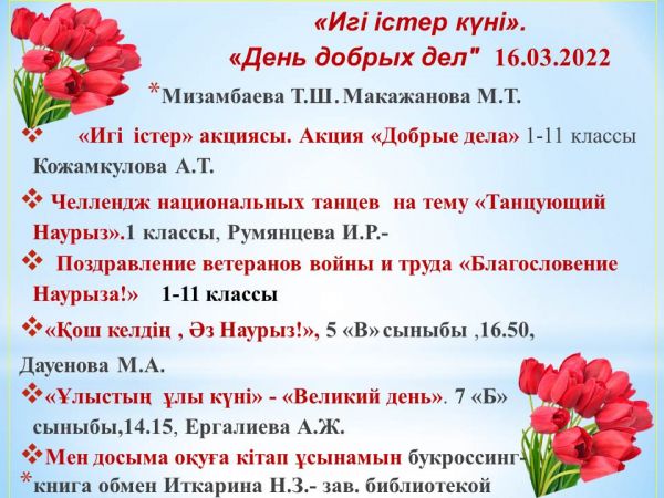 16 наурыз – игі істер күні өтті.