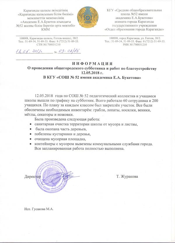 1 июня 2018 года в КГУ «СОШ №52 имени академика Е.А. Букетова»