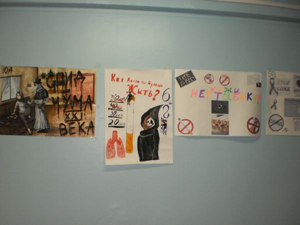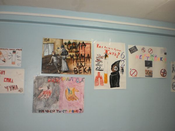 В нашей школе была организованна выставка газет, посвященная профилактике табакокурения и СПИДа