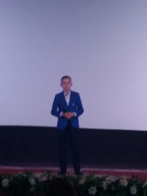 Учащиеся нашей школы, Махина Софья, Новикова Виктория и Кошиков Илья выступили на фестивале детского творчества "Фильм! Фильм! Фильм!" в рамках празднования 350-летия Казыбек би.