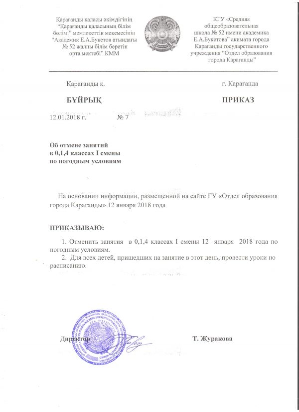 Отмена занятий 11 января 2018 года для учащихся 2 смены