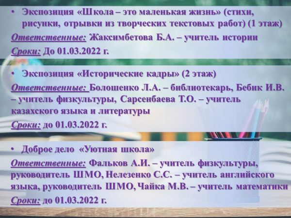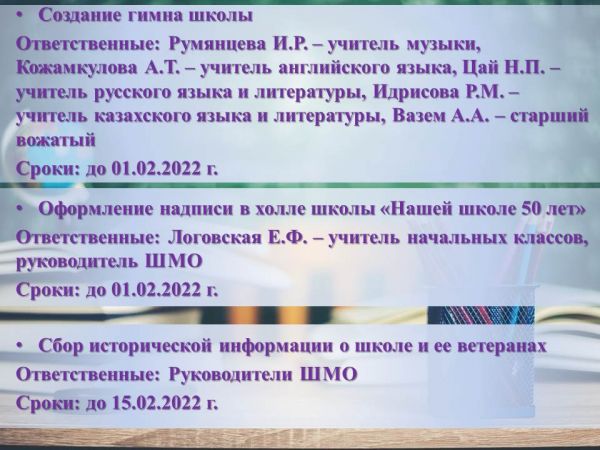 План мероприятий, посвященных 50-летию школы