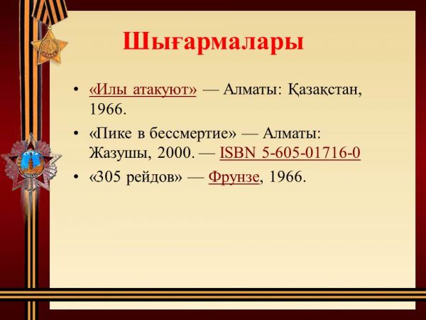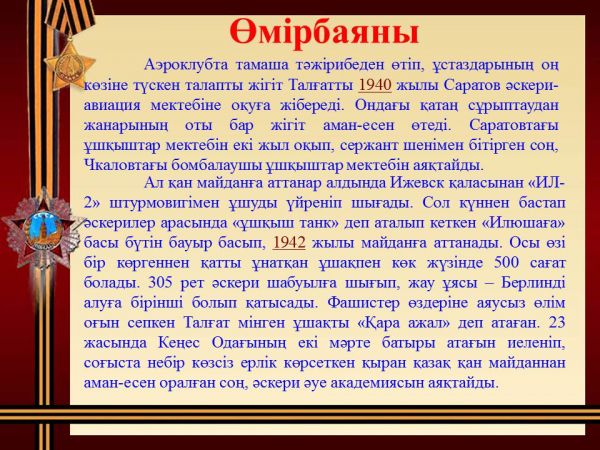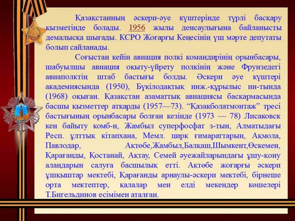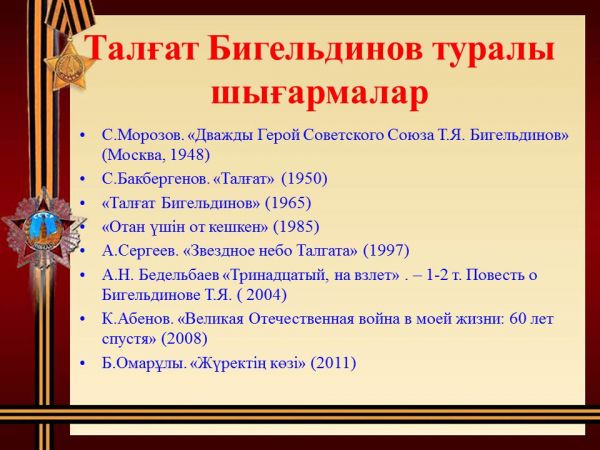 К 100-летию со дня рождения дважды Героя Советского Союза - Талгата Бигельдинова