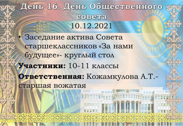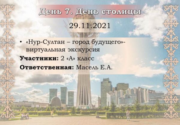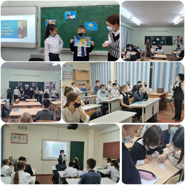 30.11.2021 в предверии Дня Первого Президента РК во всех классах были проведены классные часы, посвященные истории суверенного Казахстана и роли Н.Назарбаева в развитии страны.