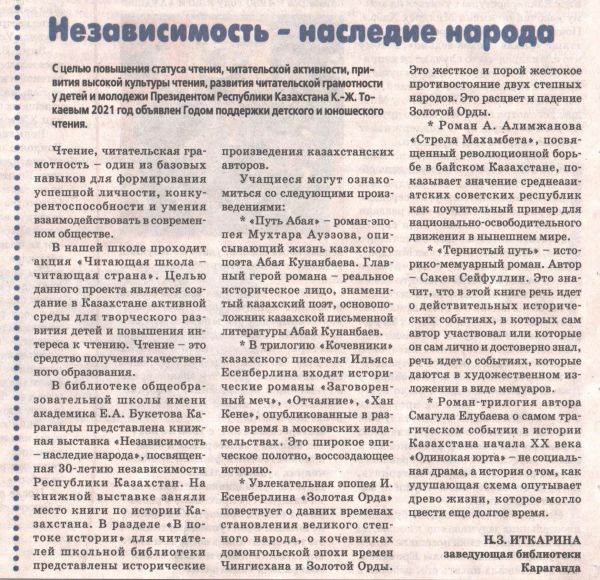 Библиотекарь школы Иткарина Н.З. написала и опубликовала статью. Читаем, поддерживаем!