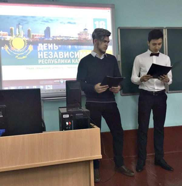 В честь празднования 25-летия Независимости Республики Казахстан 12 декабря в 11Б классе был проведен классный час по теме "Казахстан на мировой арене"