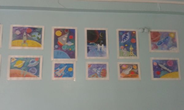 12 сәуірде Ғарышкерлер Күні қарсаңында 1-4 сыныптар арасында суреттер көрмесі ұйымдастырылды.