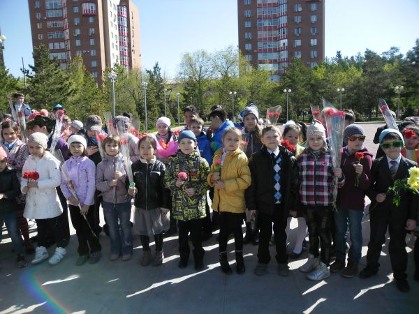 6 мамырда мектепте Жеңіс Күніне арналған, Салтанатты линейка өтті. Линейкадан кейін 1-4 сыныптың оқушылары мұғалімдер және ата-аналармен "Мәңгі алау" мемориалына гүлдер қойды.