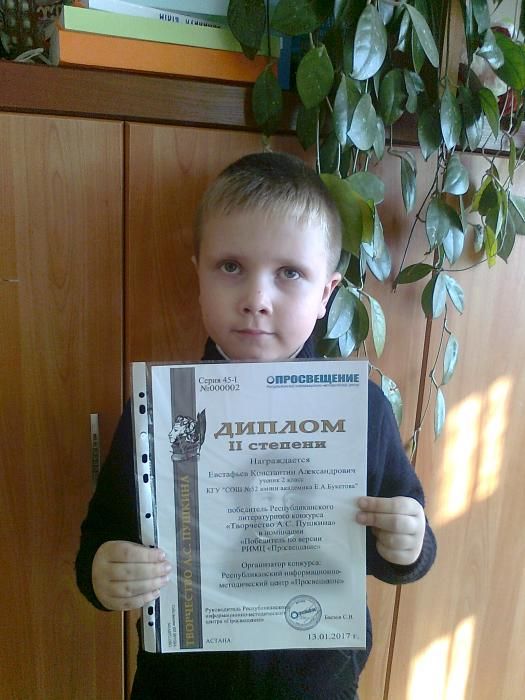 Республикалық әдебиеттік байқауда " А.С. Пушкиннің Шығармашылығында" Евстафьев Константин 2 орын алды. Құттықтаймыз!!!