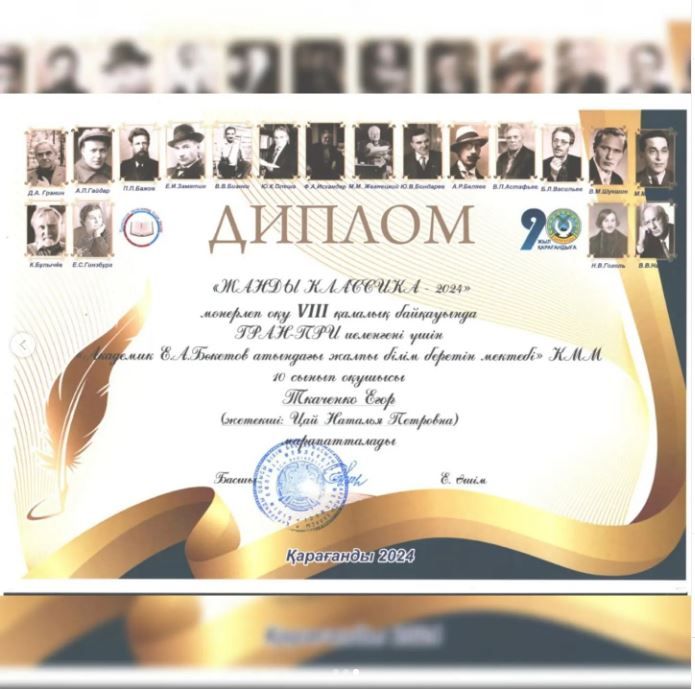 Ткаченко Егор, ученик 10 "Б" класса, завоевал гран-при VIII Городского конкурса чтецов "Живая классика". Егор блестяще исполнил отрывок из рассказа М. Зощенко "Аристократка&…