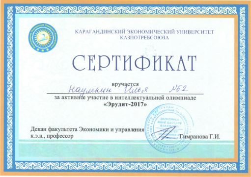 Наши учащиеся участвовали в интеллектуальной олимпиаде "Эрудит-2017", которая проходила в КЭУ. Двое учащихся заняли призовые места! Поздравляем!!!