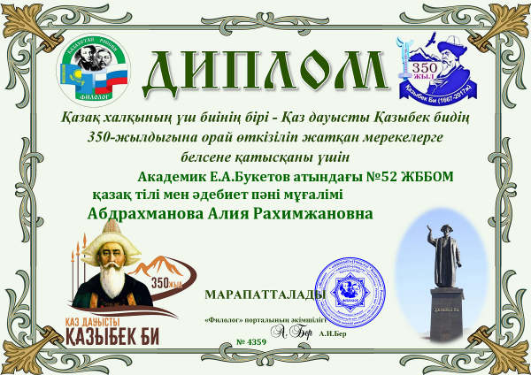Учащиеся нашей школы уаствовали в конкурсе к 350-летию Казыбек би