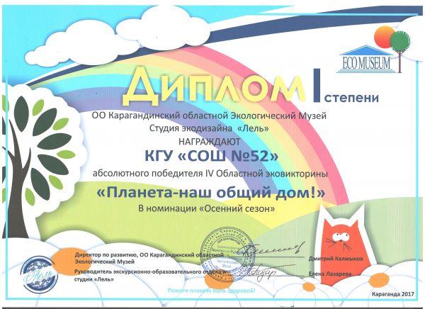 Учащиеся нашей школы приняли активное участие в конкурсе "Всемирный день защиты животных", который проводил Карагандинский зоологический парк! Все учащиеся заняли призовые места! Поздравля…