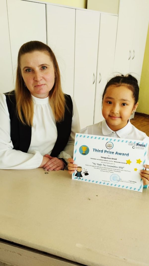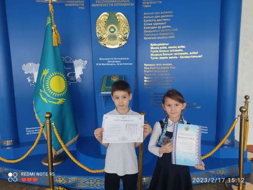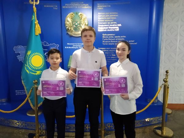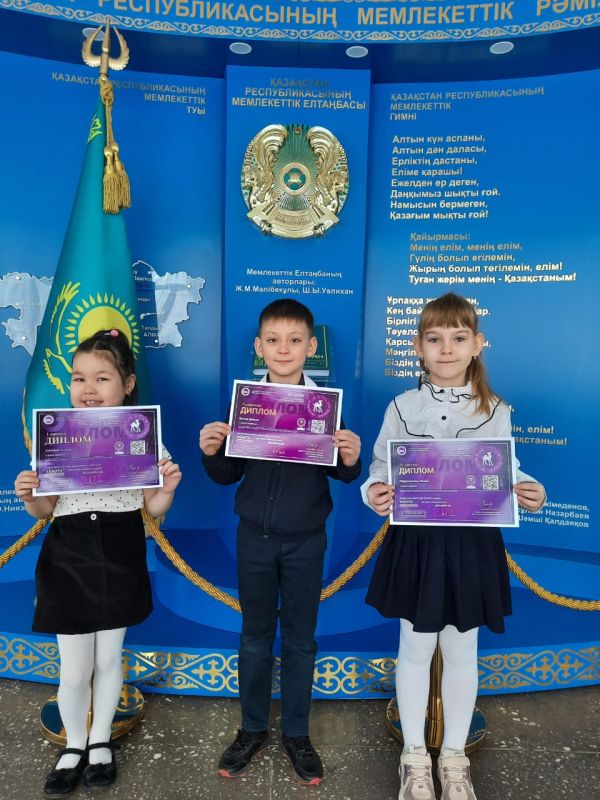 Учащиеся 1 Б класса, победители олимпиады "Акбота": Алимжан Алина-1 место, Вагнер Демьян-2 место и Абдурахманова Полина-3 место!