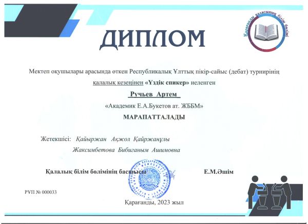 10 марта 2023 года прошла церемония награждения победителей и призёров областного этапа Республиканской олимпиады по 15 общеобразовательным предметам. Азиев Зелимхан, ученик 11Б класса показал отлич…