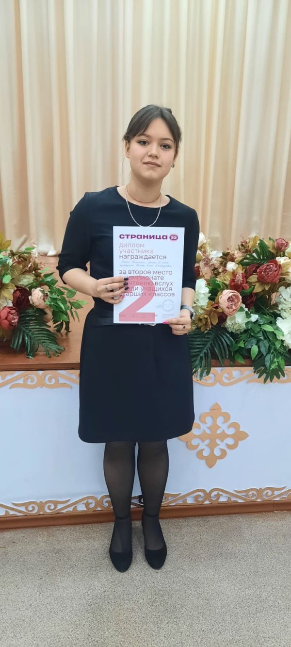 Поздравляем Нагай Доминику, ученицу 11Б класса с призовым 2 местом Чемпионата по чтению " Страница 23"