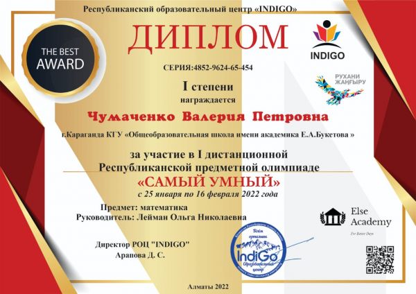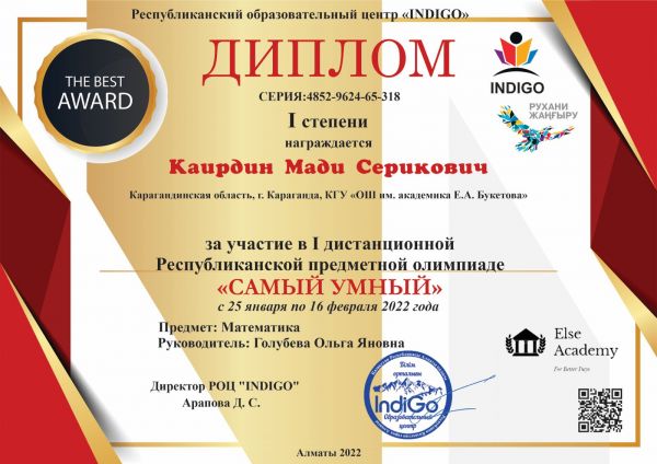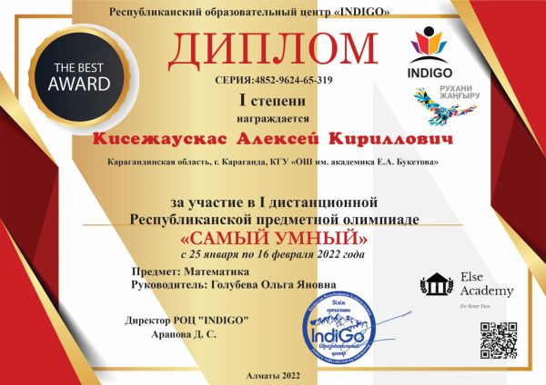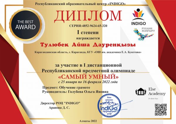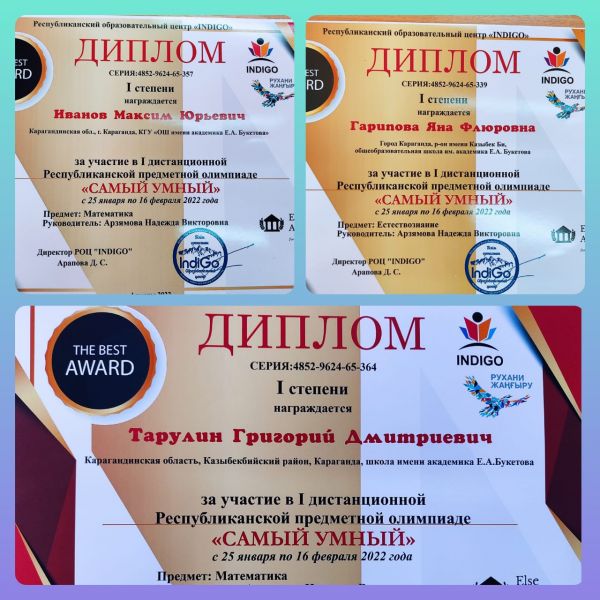1-сынып оқушылары «Ең тапқырлар» республикалық пәндік олимпиадаға қатысты (жетекшілері Лейман О.Н., Голубева О.Я.). Жеңімпаздарды құттықтаймыз!