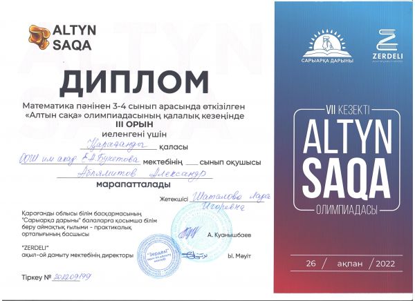 Мектеп оқушылары математика пәнінен 3-4 сынып оқушыларының «Алтын сақа» атты қалалық олимпиадасына қатысты. Жеңімпаздарды құттықтаймыз!