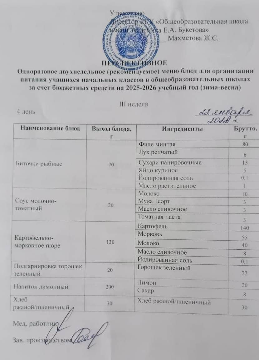 Питание школьников 20 января 2026 года