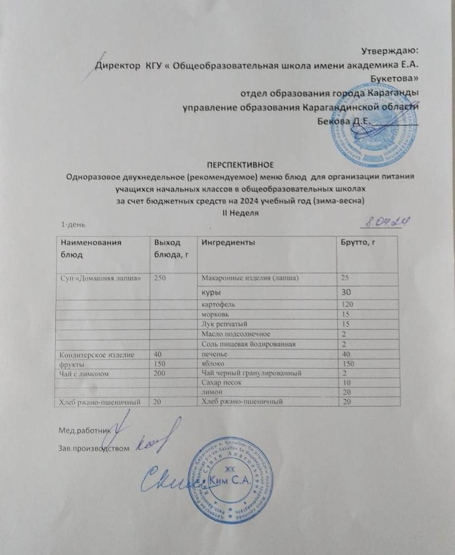 15.02.2024. прошла плановая проверка пищеблока членами бракеражной комиссии. Нарушений не выявлено.Акт в наличие.
