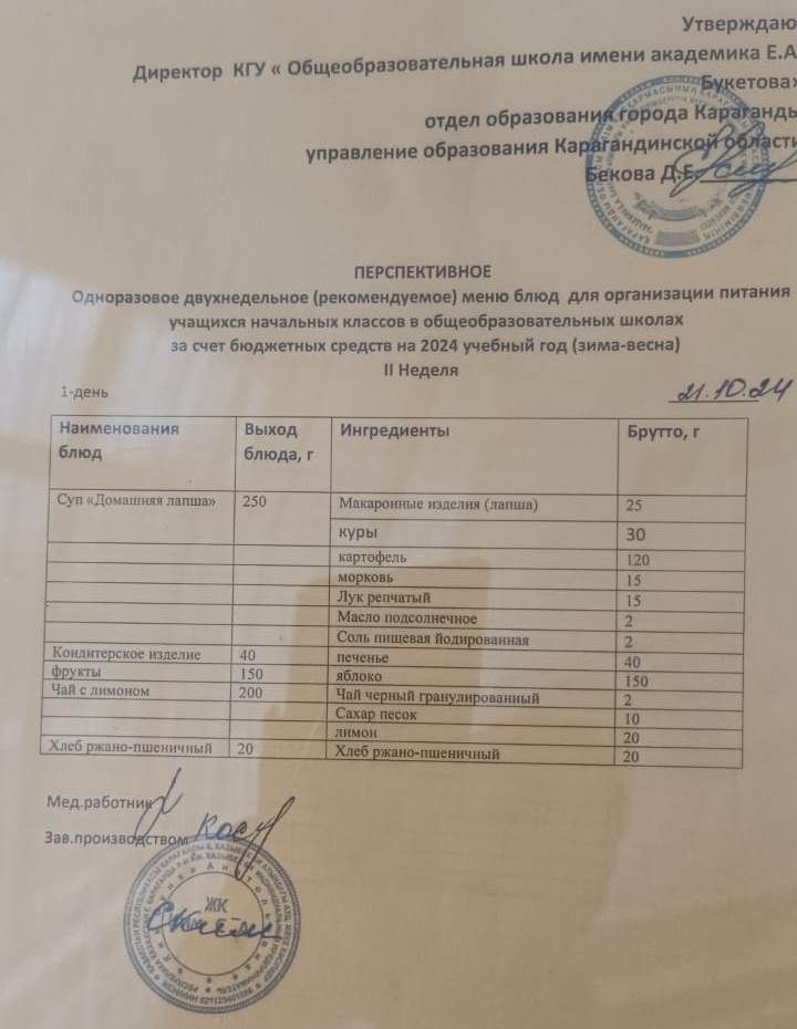 Питание школьников 24 октября 2024 года