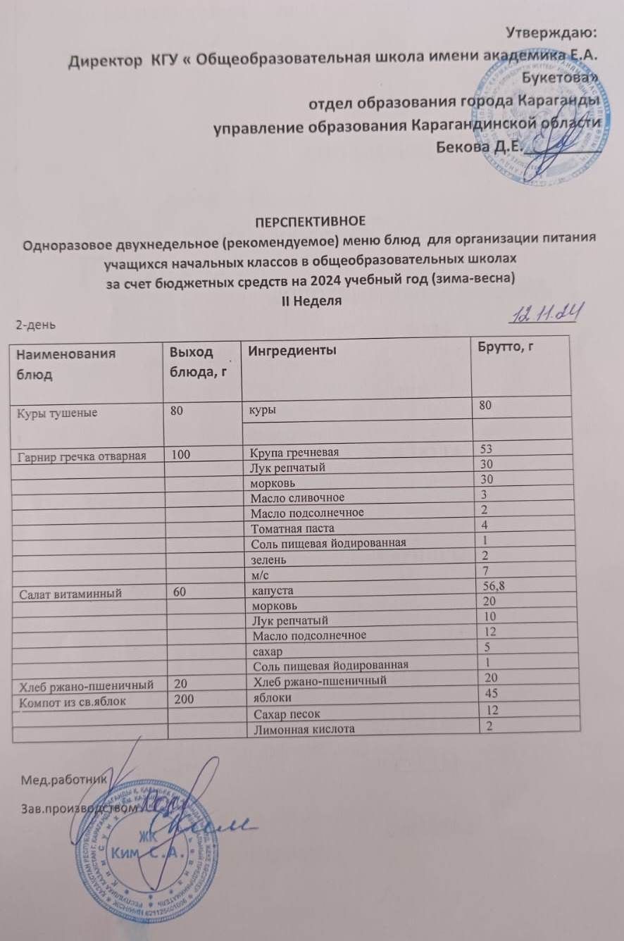Питание школьнтков 12 ноября 2024 года